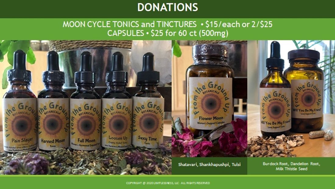 A list of all the products we carry can be found on the Herb News page. We use From the Ground Up Botanicals™ herbal products